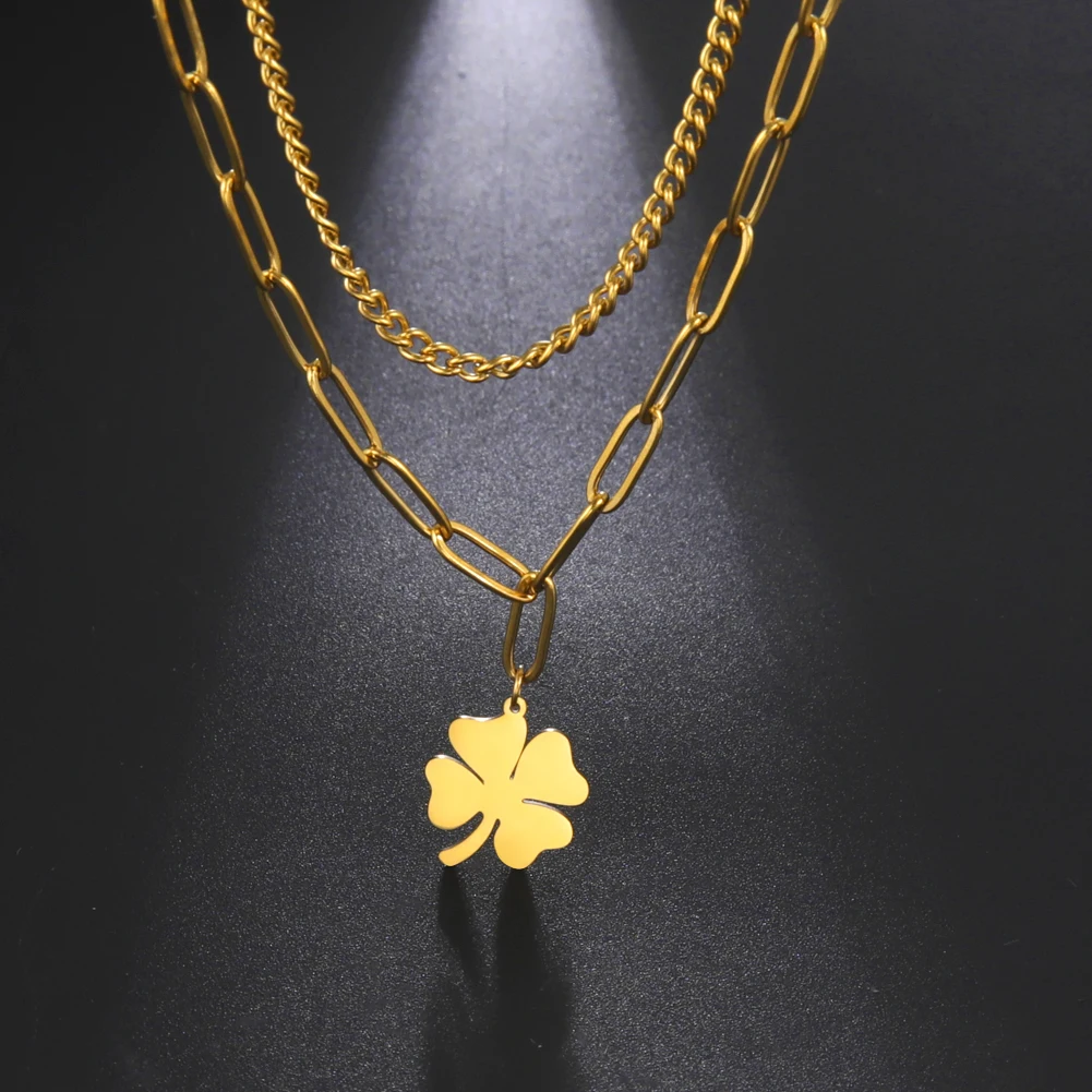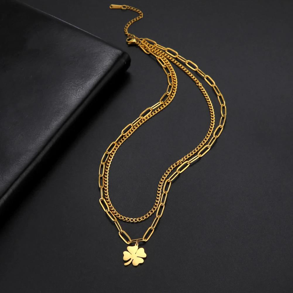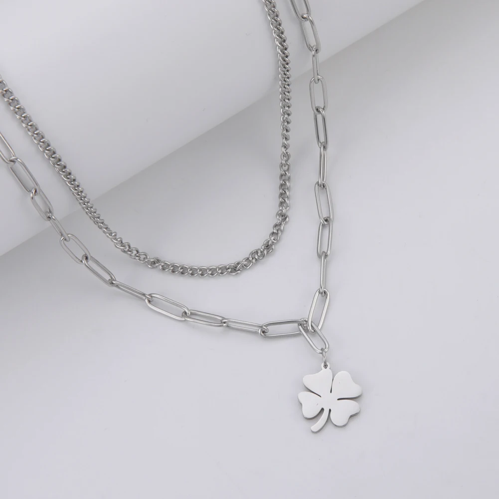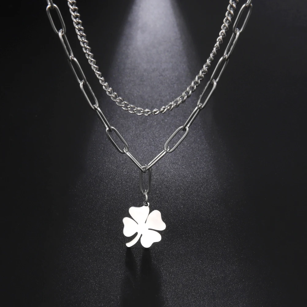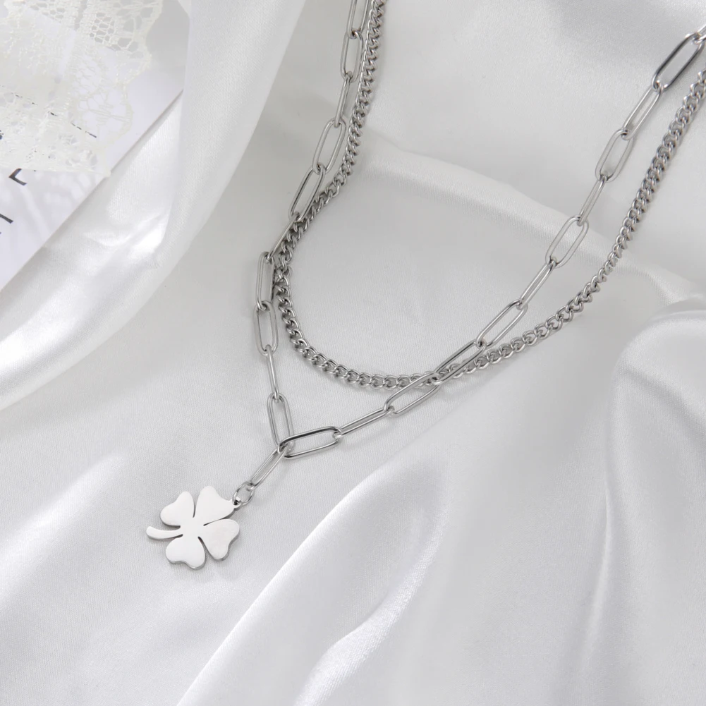 - Clover Pendant Clavicle Necklace: Long Chain Pendant Necklace