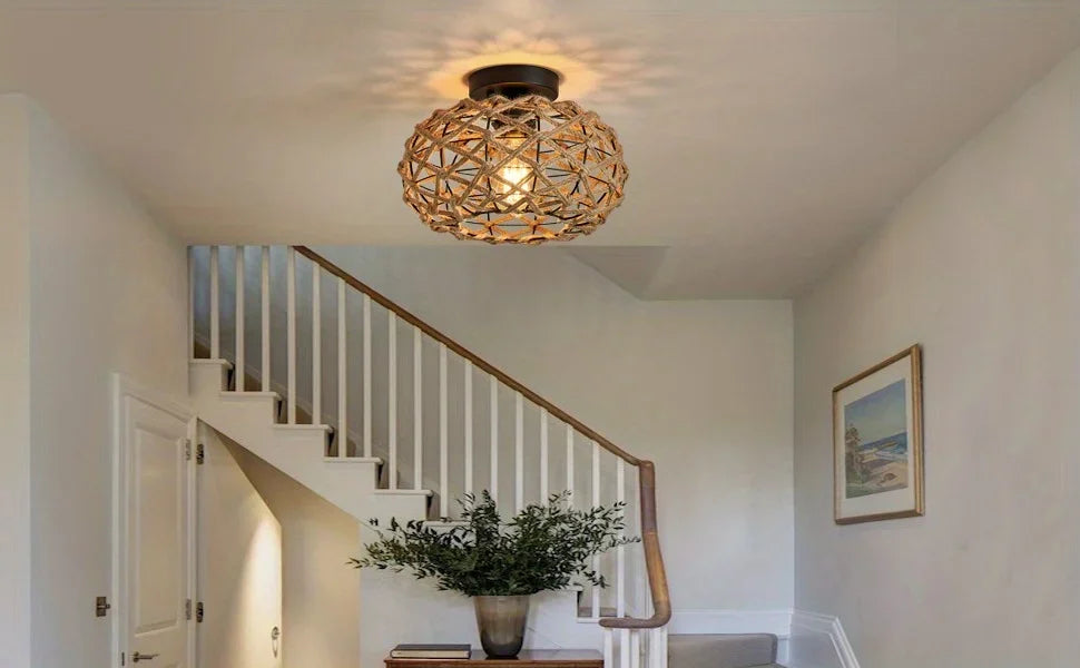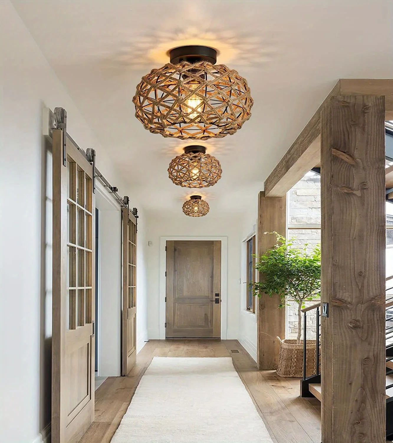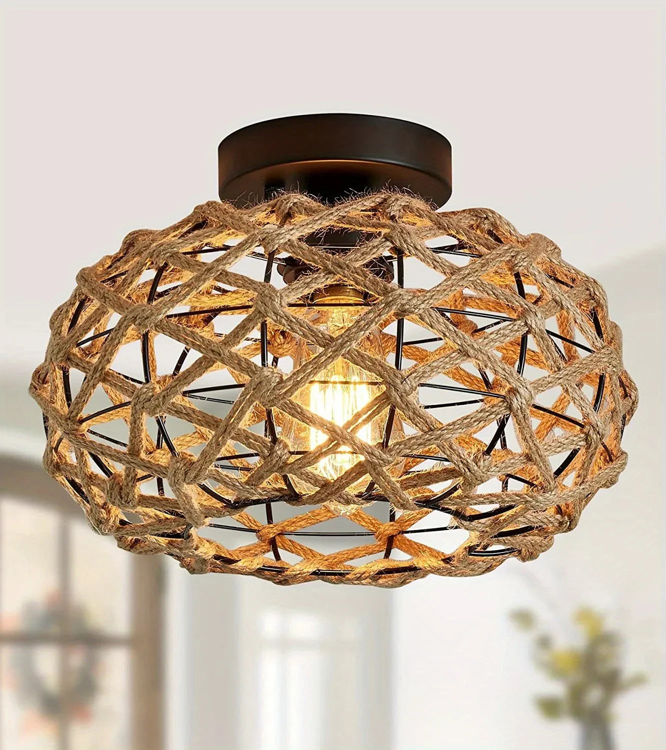 Hemp Rope Ceiling Light Fixtures Natural Woven Rattan Wicker Chinese Style Lampshade for Kitchen Bedroom Hallway Decor Lighting