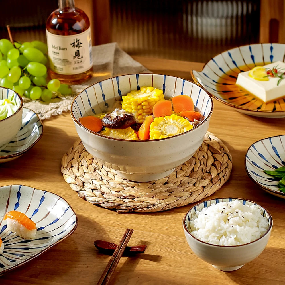 Japanese Ceramic Bowl Set - Microwave-Safe