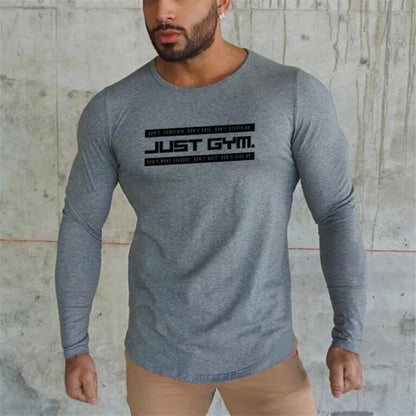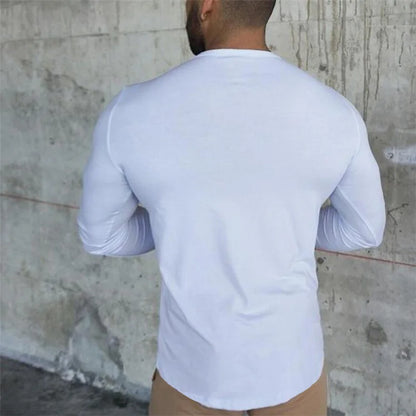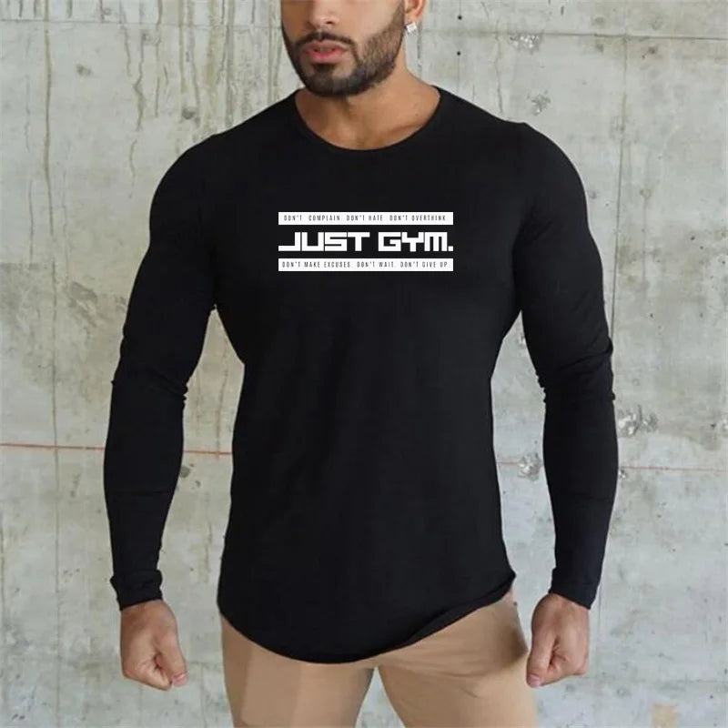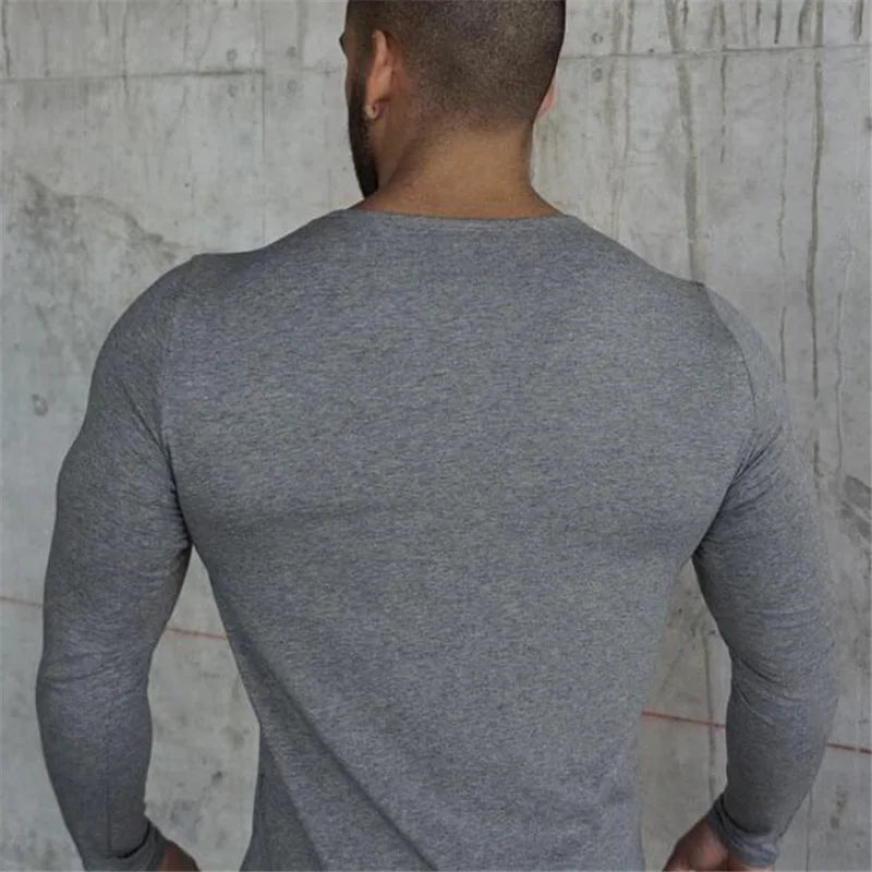 Men's Running Cotton Long Sleeve Autumn T-Shirts Gym Bodybuilding Training Fitness Shirts Jogging Workout Slim Fit Sportswear