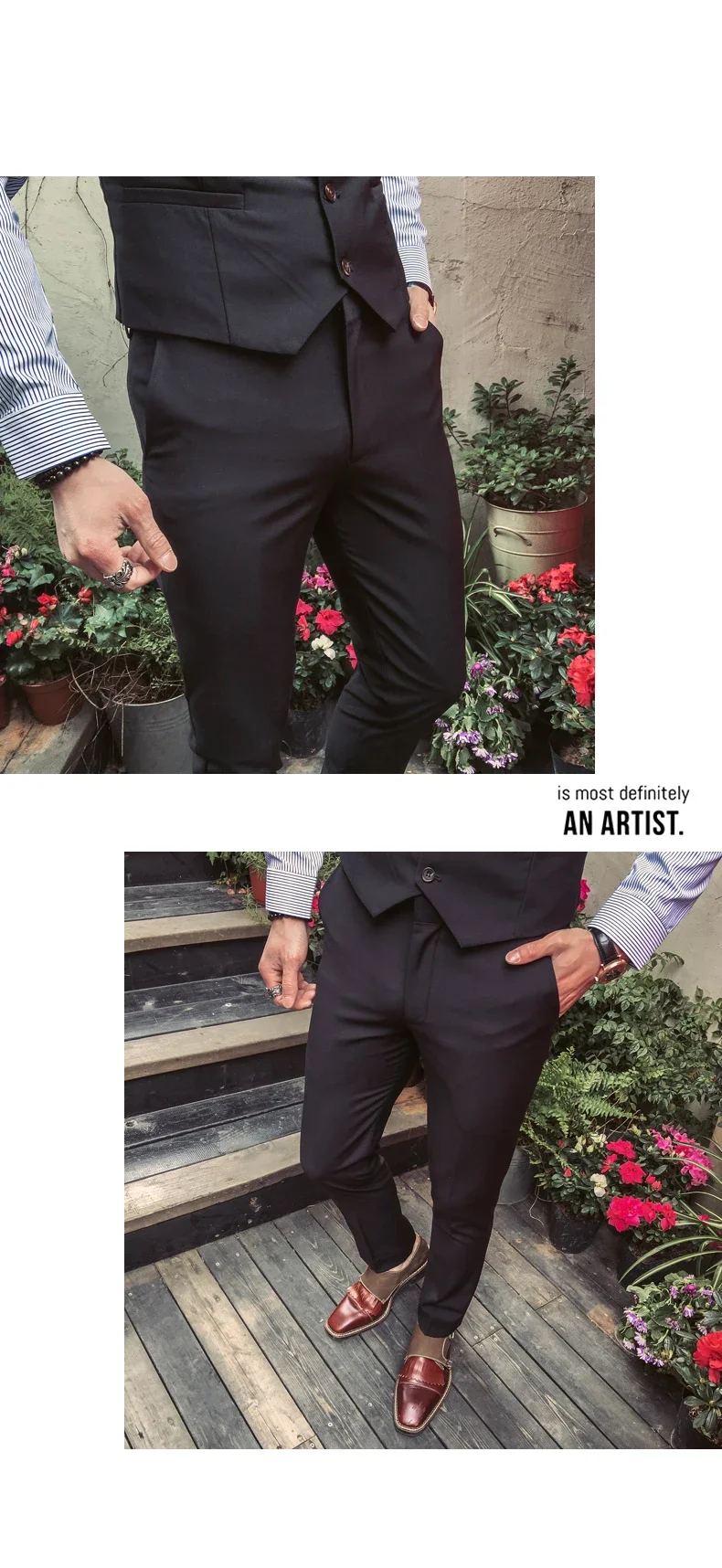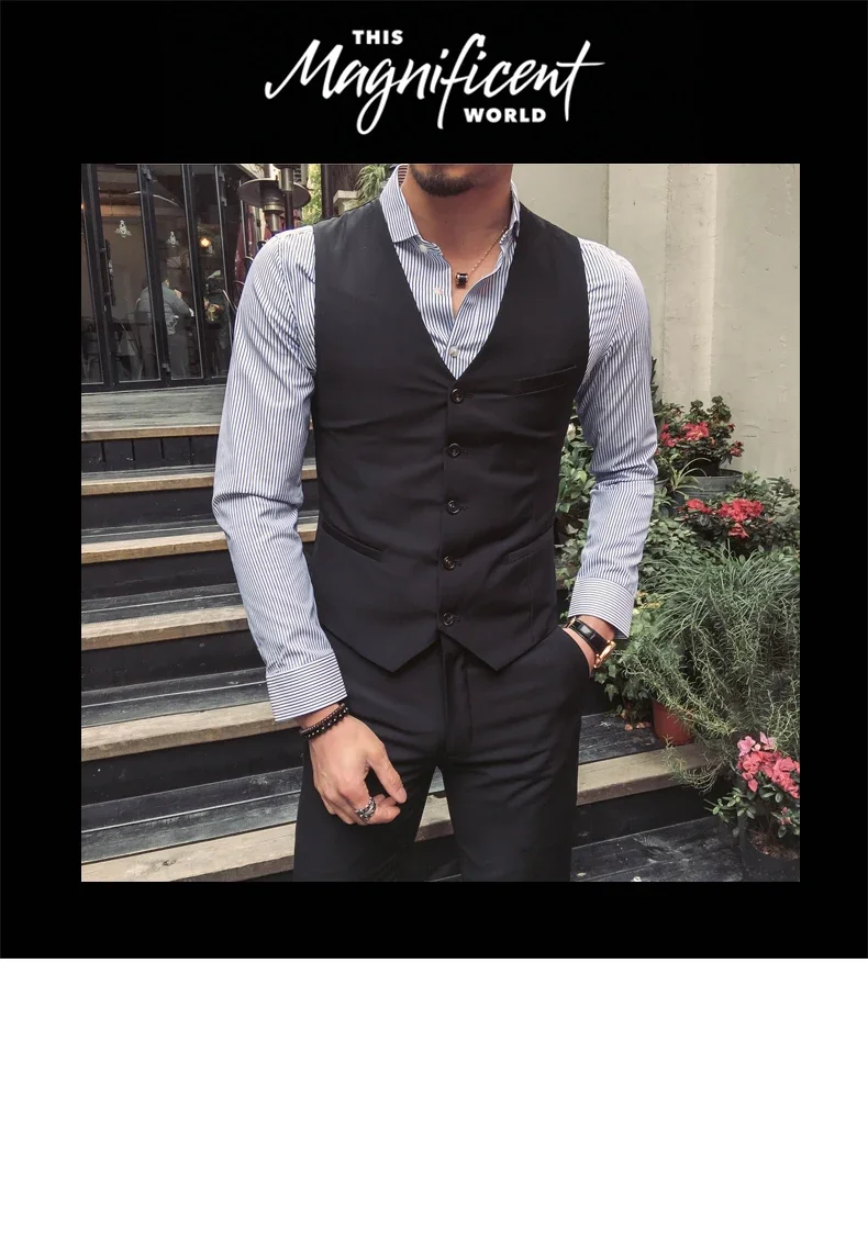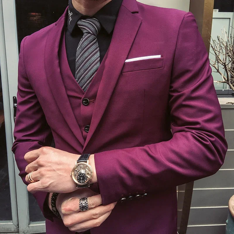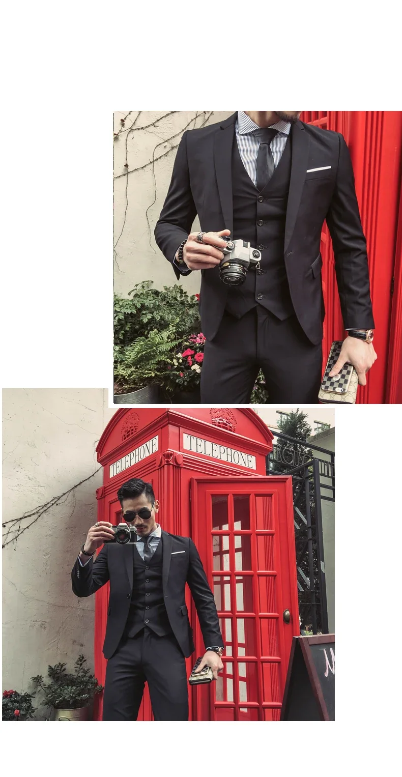 - Complete Set : This three-piece set includes a jacket, trousers, and waistcoat, offering a complete look that is both stylish and versatile.