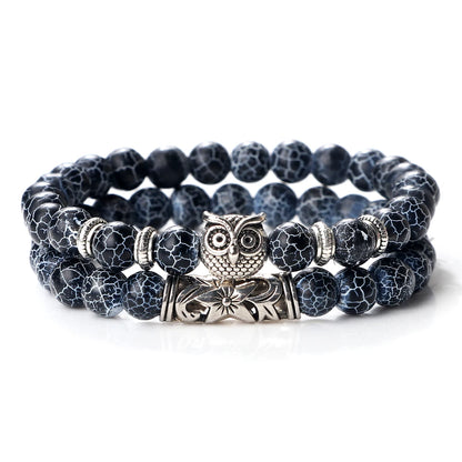 Crafted with classic owl charms and natural stone beads like black lava and onyx, these bracelets exude timeless elegance for both men and women. Perfect for couples, they symbolize unity and style, making them an ideal gift. Elevate your fashion with these charming and versatile accessories, blending sophistication with nature's allure