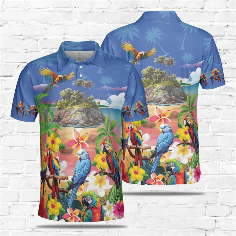 Printed pattern: Parrot Birds Graffiti 3D Printed Polo Shirt For Men Fishion Casual Women T-Shirt Funny Y2k Kids Tshirt Ropa Hombre