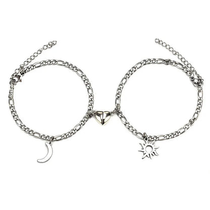 Silver Heart Magnet Couple Bracelets Trendy Love