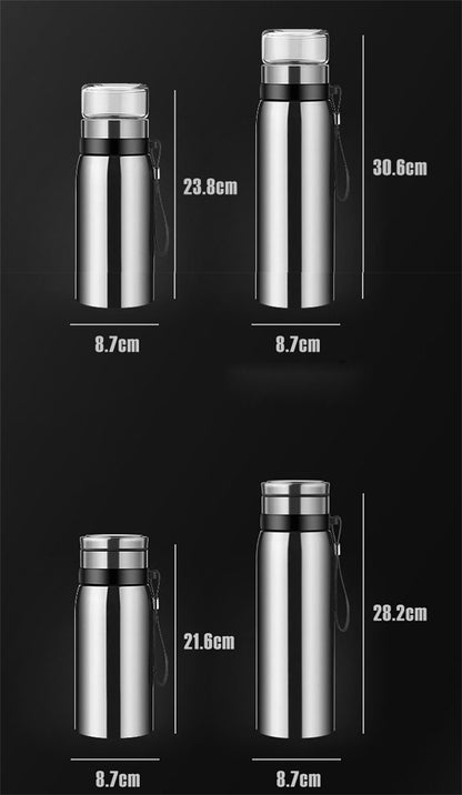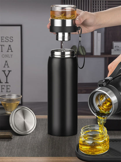 Experience the ultimate in beverage versatility with this large-capacity stainless steel vacuum flask. Featuring a built-in tea infuser and a separate compartment for tea separation, it's perfect for tea lovers. Available in 750ml and 1100ml sizes, this tumbler thermos ensures your drinks stay hot or cold while you're on the move. Ideal for travel or daily use, enjoy insulated refreshment wherever you go.