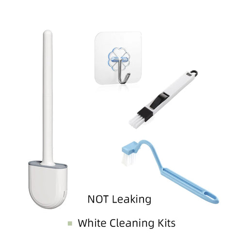 WIKHOSTAR Wall Mounted Toilet Brush Silicone Flat Brush Head Toilet Brush Cleaner Brush Set Toilet Cleaning Brush Bathroom