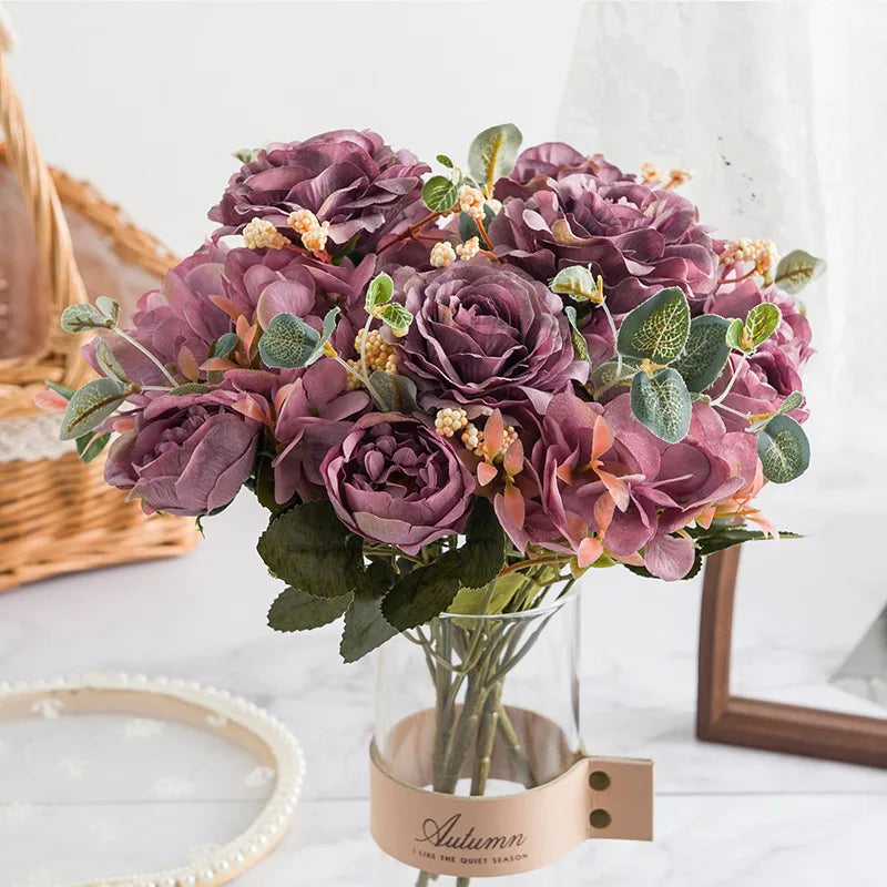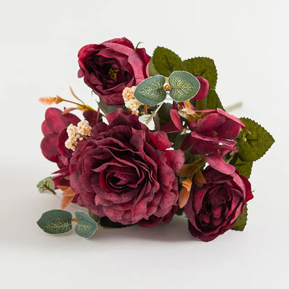 - Retro Silk Artificial Rose Flowers DIY Autumn Wedding Home Decoration Christmas Arrangement Fake Peony Hydrangea Bride Bouquet