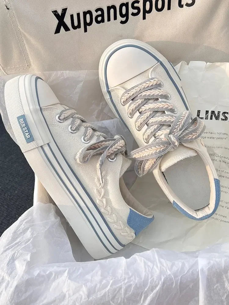 - Vintage Style : Featuring a classic white color and vintage board shoe design, these sneakers add a trendy touch to any outfit.