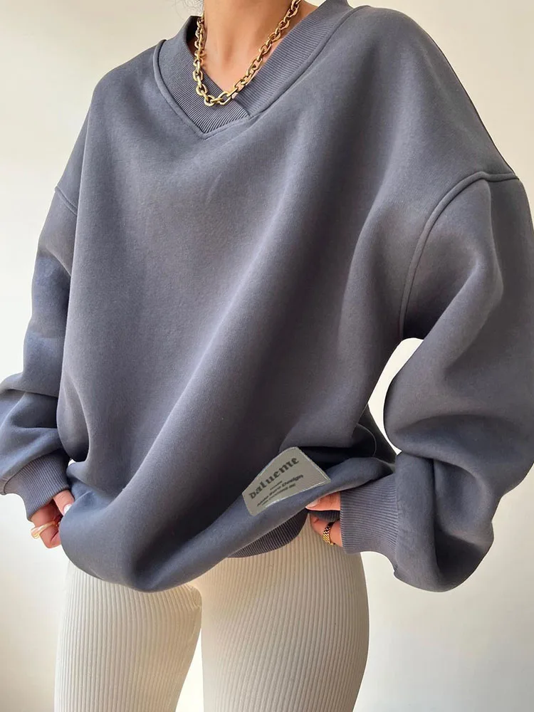 Women's Long Sleeve V-neck Loose Hoodie