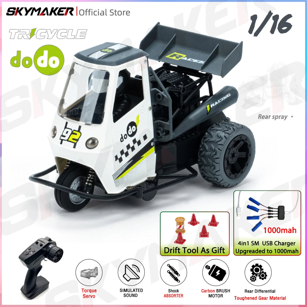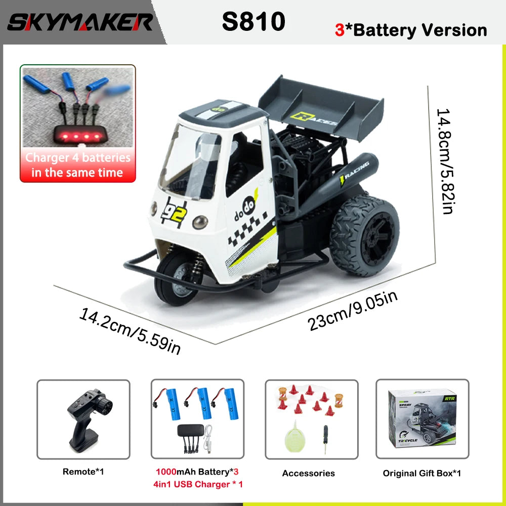 S810 1/16 RC Car 2.4G Remote Control Awd On Road 25Km/H High Speed Three Wheels Emulation RC Motorcycle Electric Toy Gift for Boy